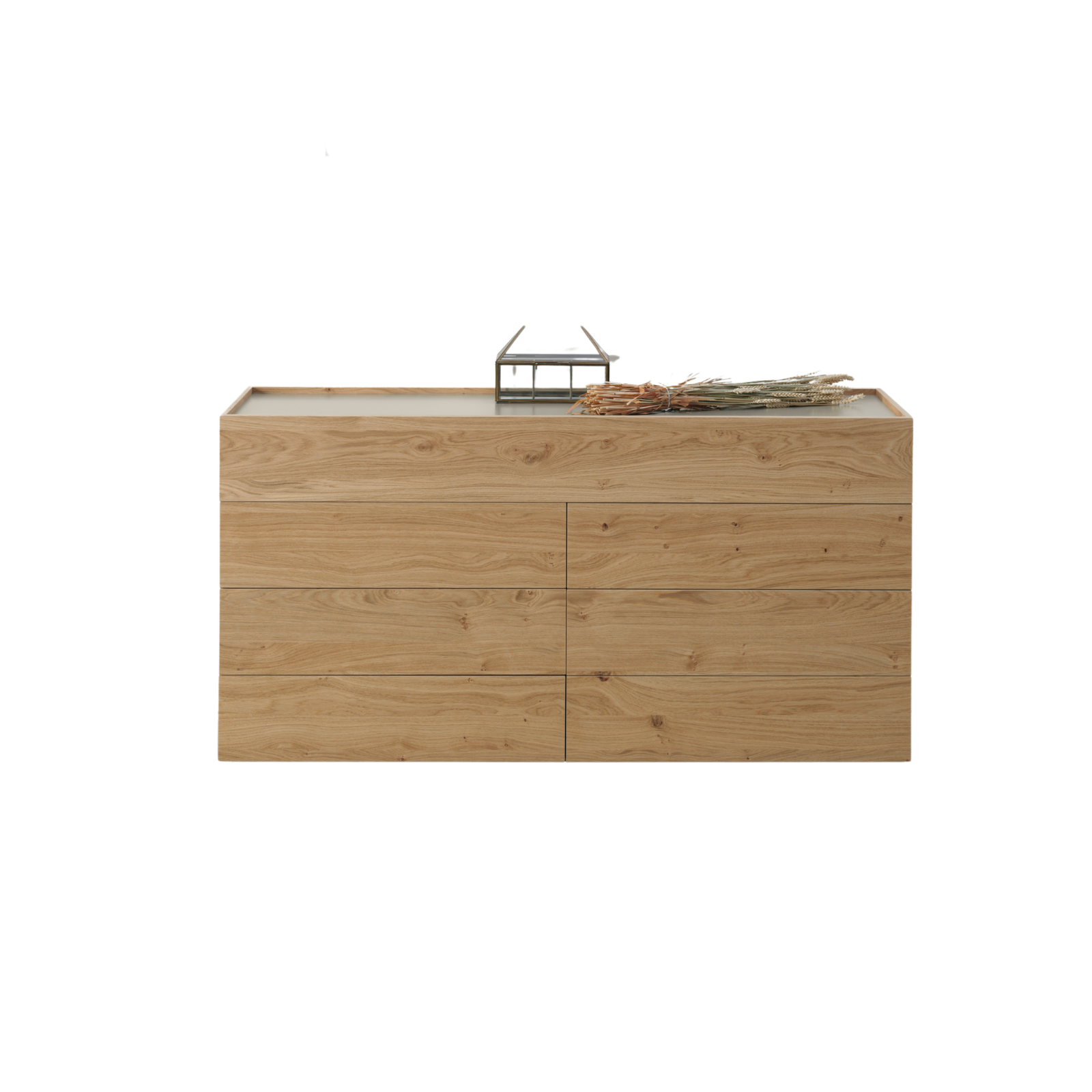 Warm colour scheme and natural materials give sense of balance and harmony between different elements in the space