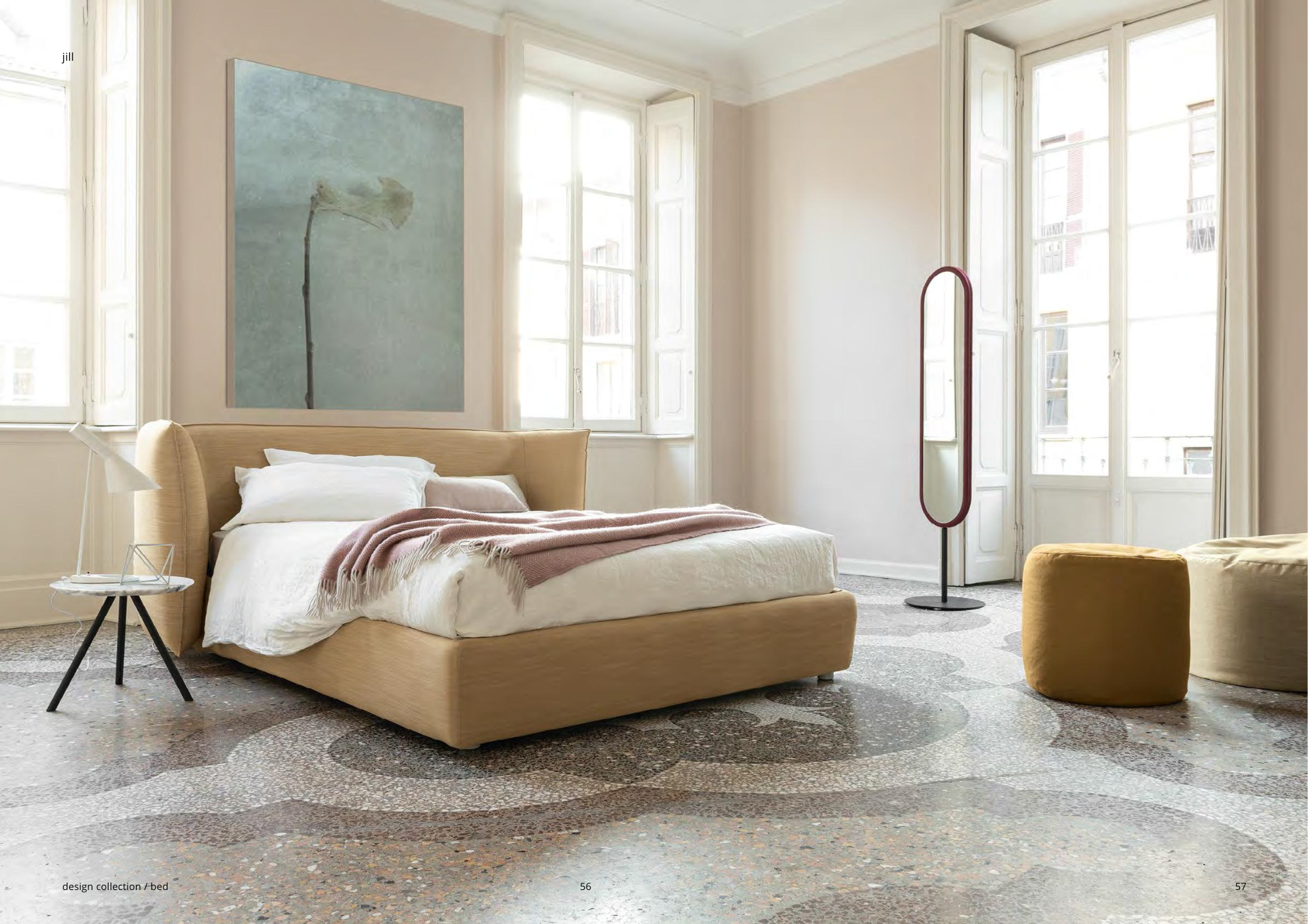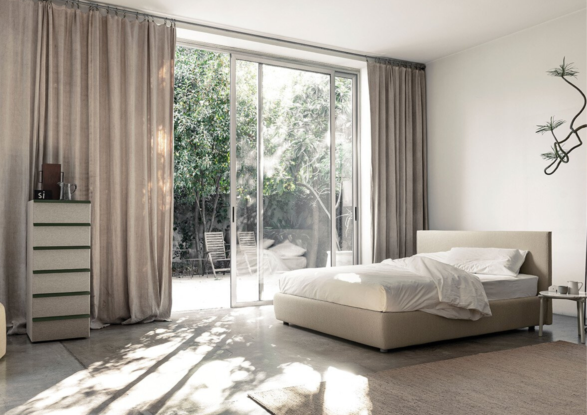 A large-scale mirror elevates the appearance of the space and in many cases serves as a focal point. You can hang it or lean it against the wall to give it a more relaxed and contemporary look. To attract the eye, you can use a round or organically shaped mirror, or simply choose a large rectangular mirror with a classic or minimalist frame and place it against the wall. If your bedroom is small, a good tip is to place a mirror in an area that reflects a clear area or a window that reflects natural light. This will create the feeling of a spacious, clean and uncluttered place.