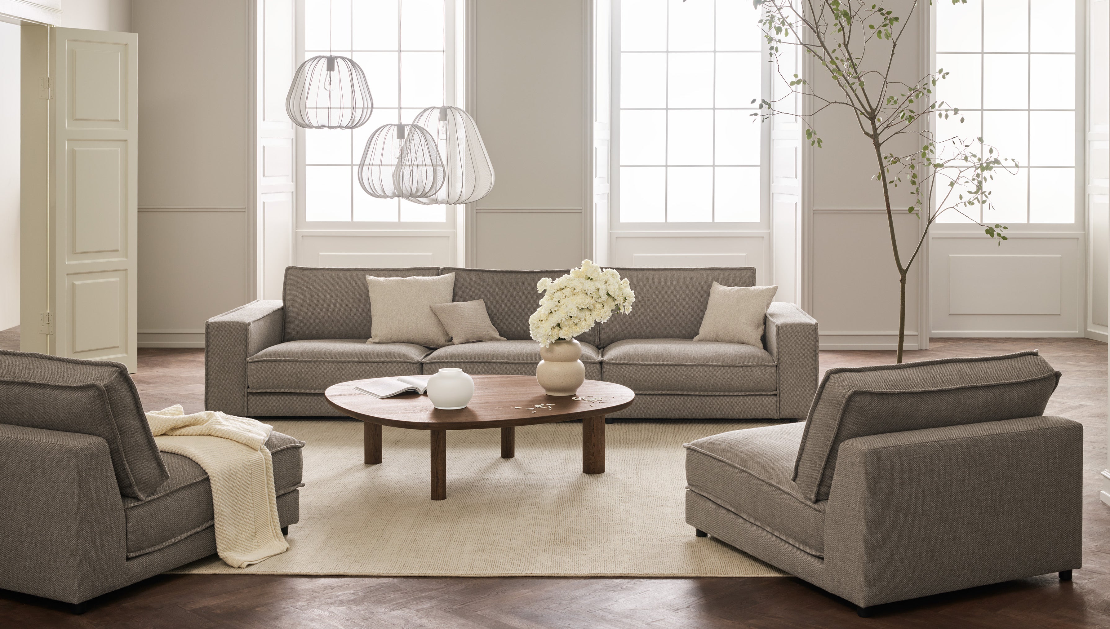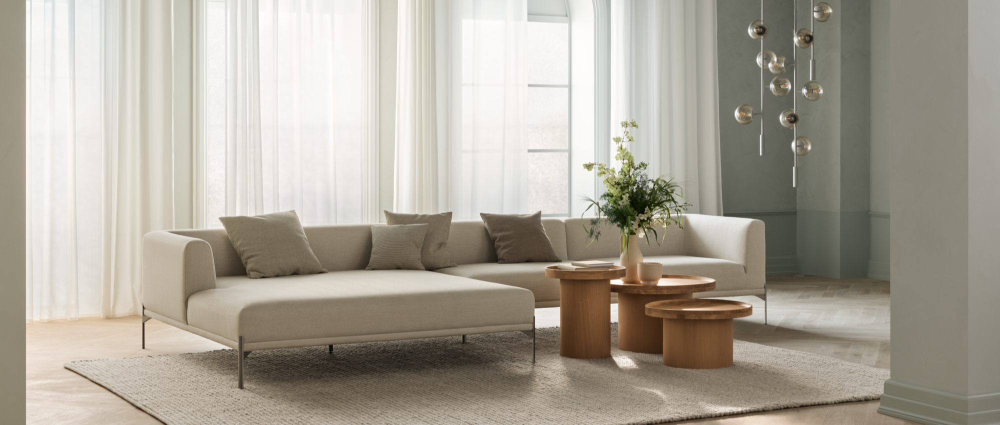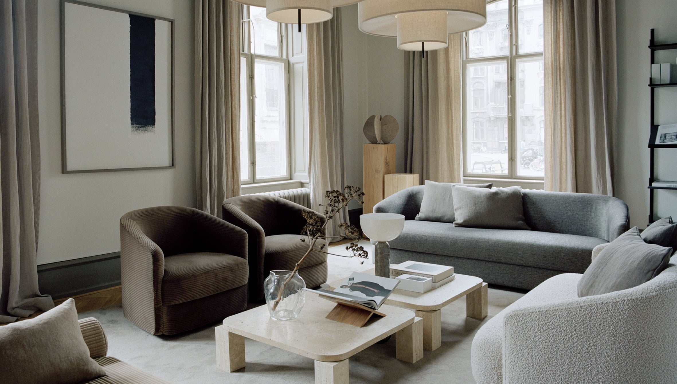 An elegant space that celebrates the beauty of natural materials while providing comfort and style