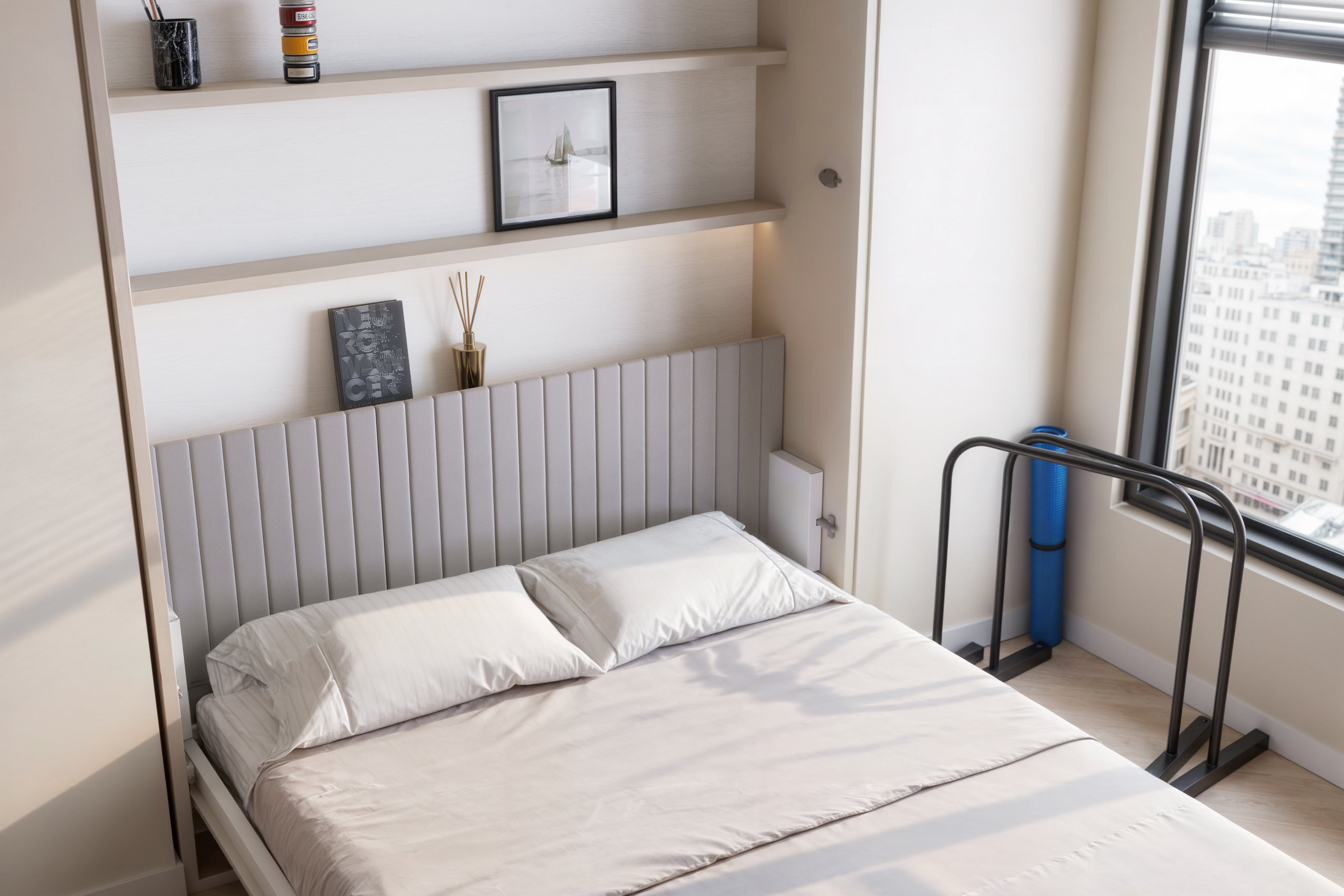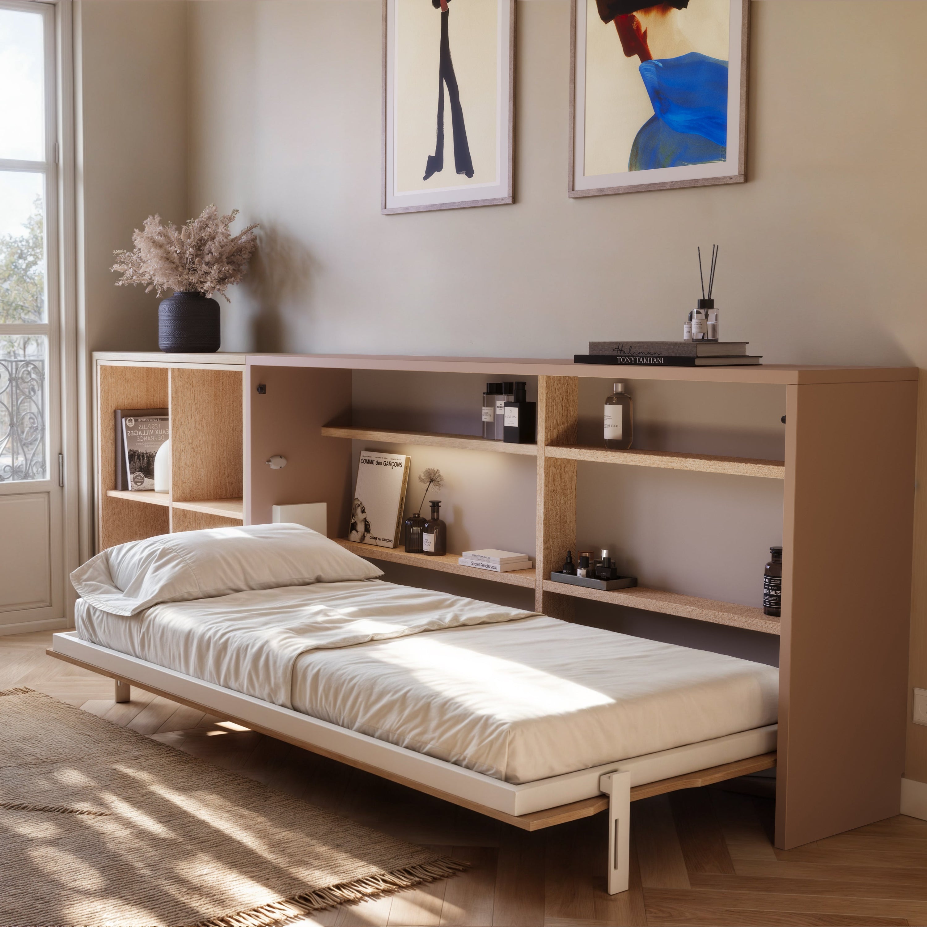 Enter the Murphy bed—a classic space-saver that folds up into the wall when not in use. Whether you need a study by day or simply want to make your bedroom feel more open, a Murphy bed gives you the freedom to reclaim your floor.
