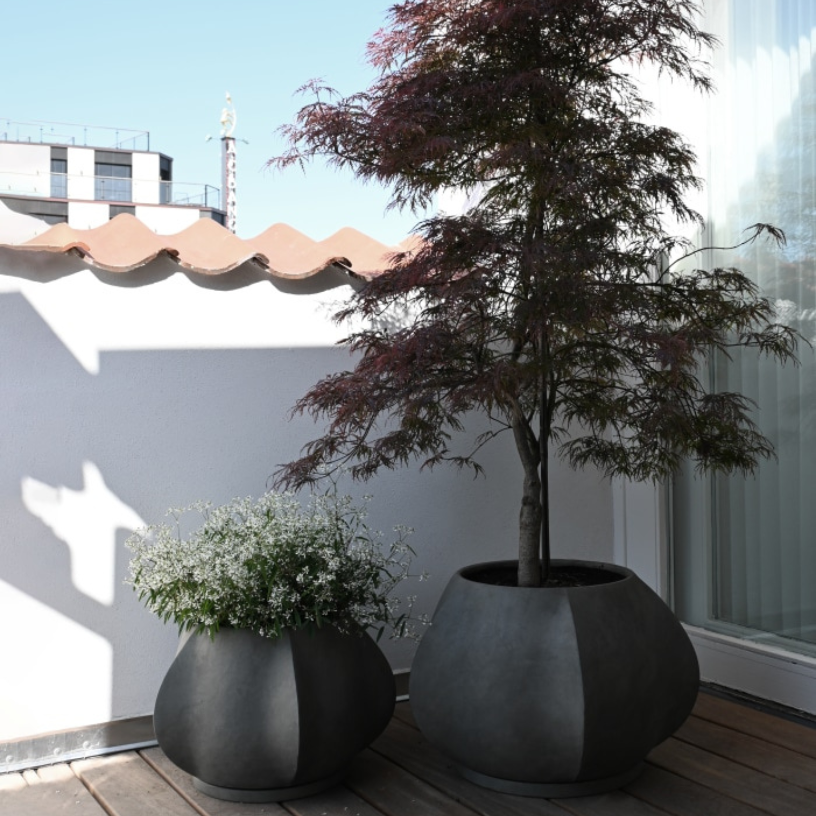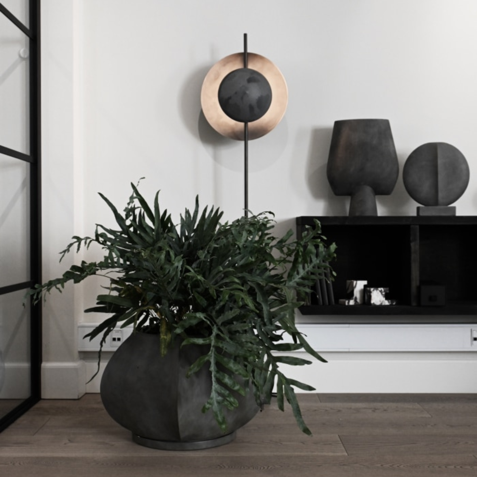 Arket is a sculptural flower pot influenced by sharp architectural lines and organic curves. Characterized by 5 vertical lines, Arket creates a sculptural contrast between light and shadow, sharp lines and soft surfaces.Arket comes in four sizes. Each Arket includes two pieces, a flower pot and saucer.