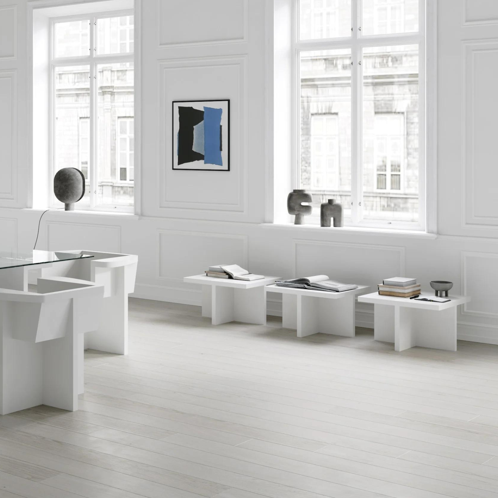 Inspired by the Brutalist architecture movement of the mid-20th century, the Brutus collection comprises a dining chair, a lounge chair, a stool and a coffee table cast in lightweight fiber concrete creating a unique surface texture increasing mobility. Each piece is hand painted to create a textured, unique surface. Emphasizing the fine balance between sharp architectural lines and a somewhat softer curve in the back and armrest, the Brutus collection is sculptural statement pieces with a compelling seating comfort.