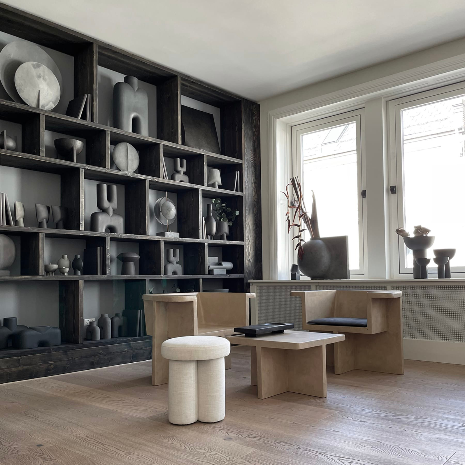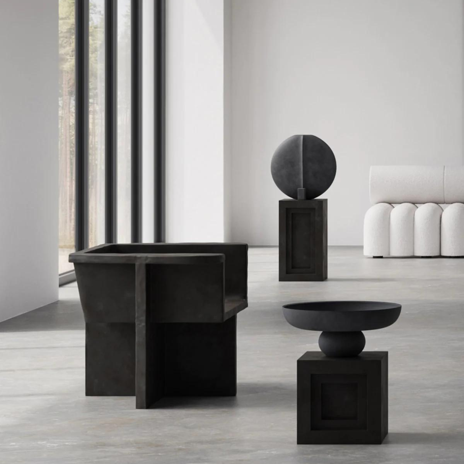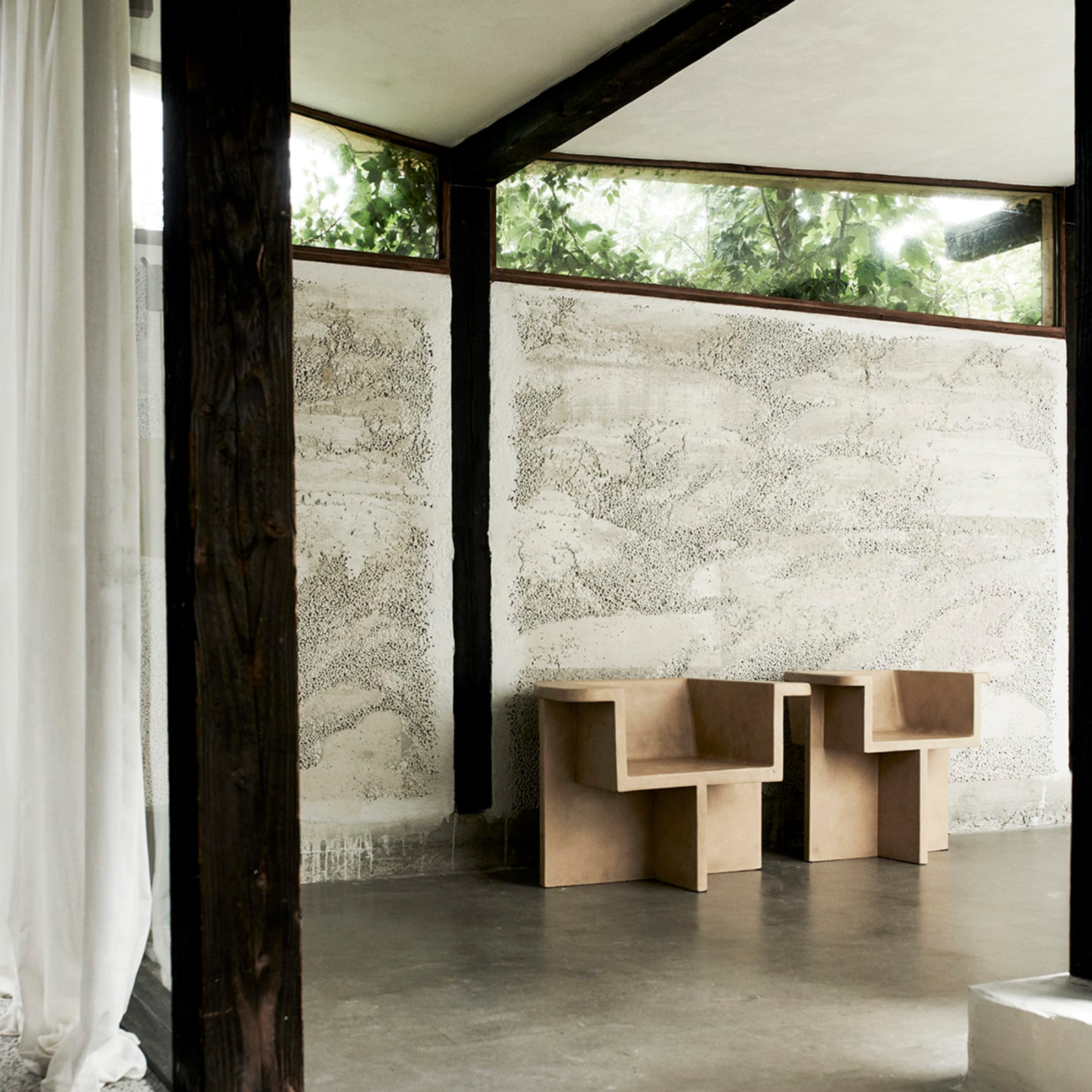Inspired by the Brutalist architecture movement of the mid-20th century, the Brutus collection comprises a dining chair, a lounge chair, a stool and a coffee table cast in lightweight fibre concrete creating a unique surface texture increasing mobility. Each piece is hand painted to create a textured, unique surface. Emphasising the fine balance between sharp architectural lines and a somewhat softer curve in the back and armrest, the Brutus collection is sculptural statement pieces with a compelling seating comfort.