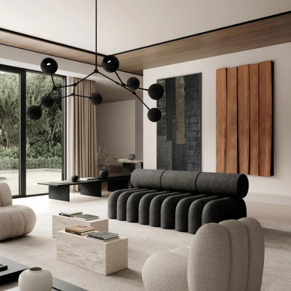 Several layers of carefully chosen foam types is combined to ensure a soft and highly comfortable seating experience, as well as emphasising the sculptural and voluminous shapes of the chair.