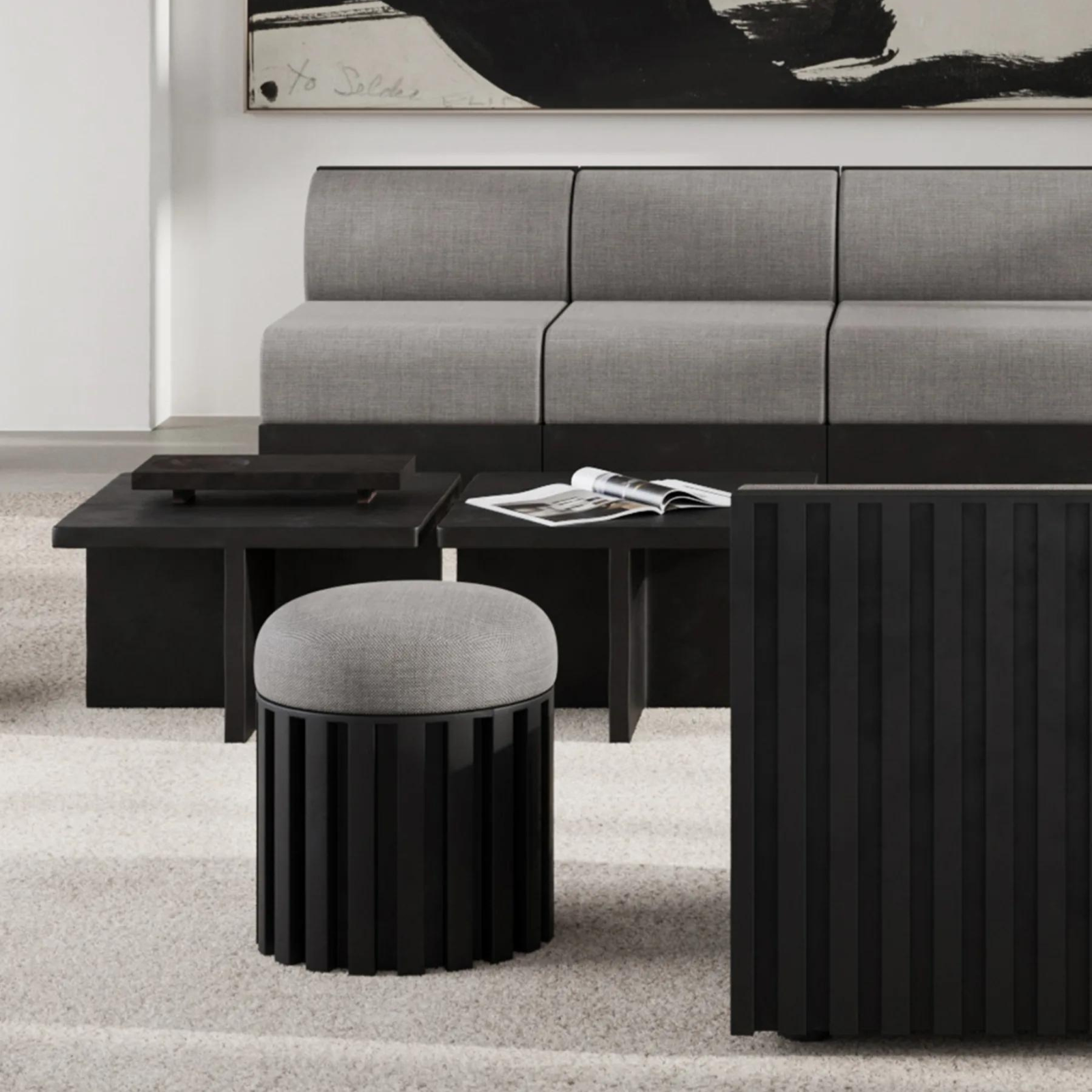 Inspired by old tribal sculptures, the Tribu collection is made of a fiber concrete base with a soft upholstered cushion on top. Characterised by a surface of architectural concrete lamellas, Tribu emphasises the fine balance between sharp architectural lines and a somewhat softer curve of the upholstery seat. The Tribu collection comprises a chair, bench and stool cast in lightweight fiber concrete for increased mobility.